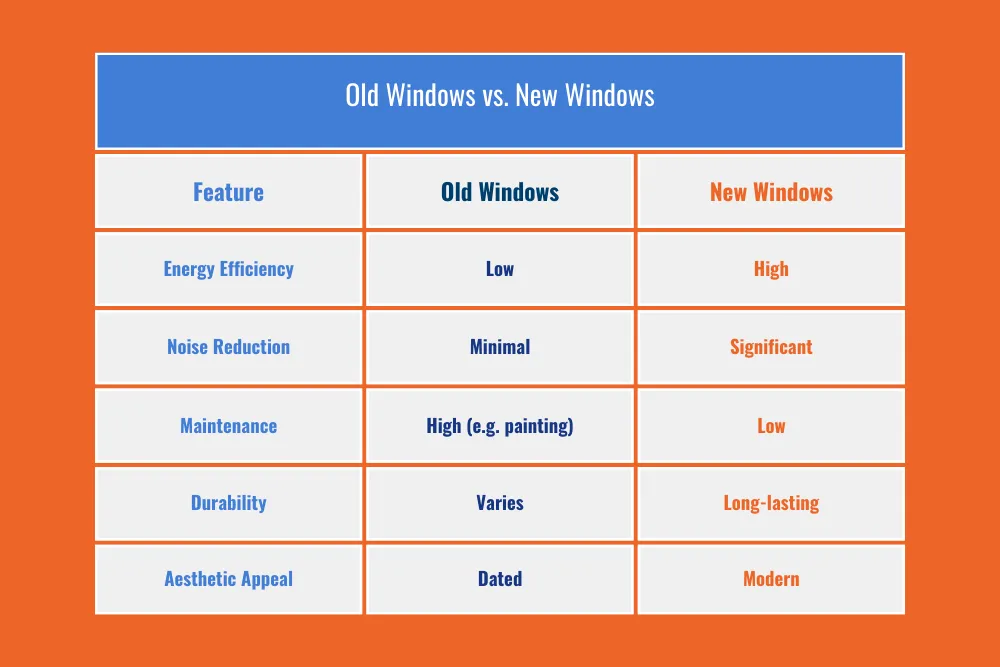 Older windows often lack the features and technology of modern options. Here’s a quick comparison: