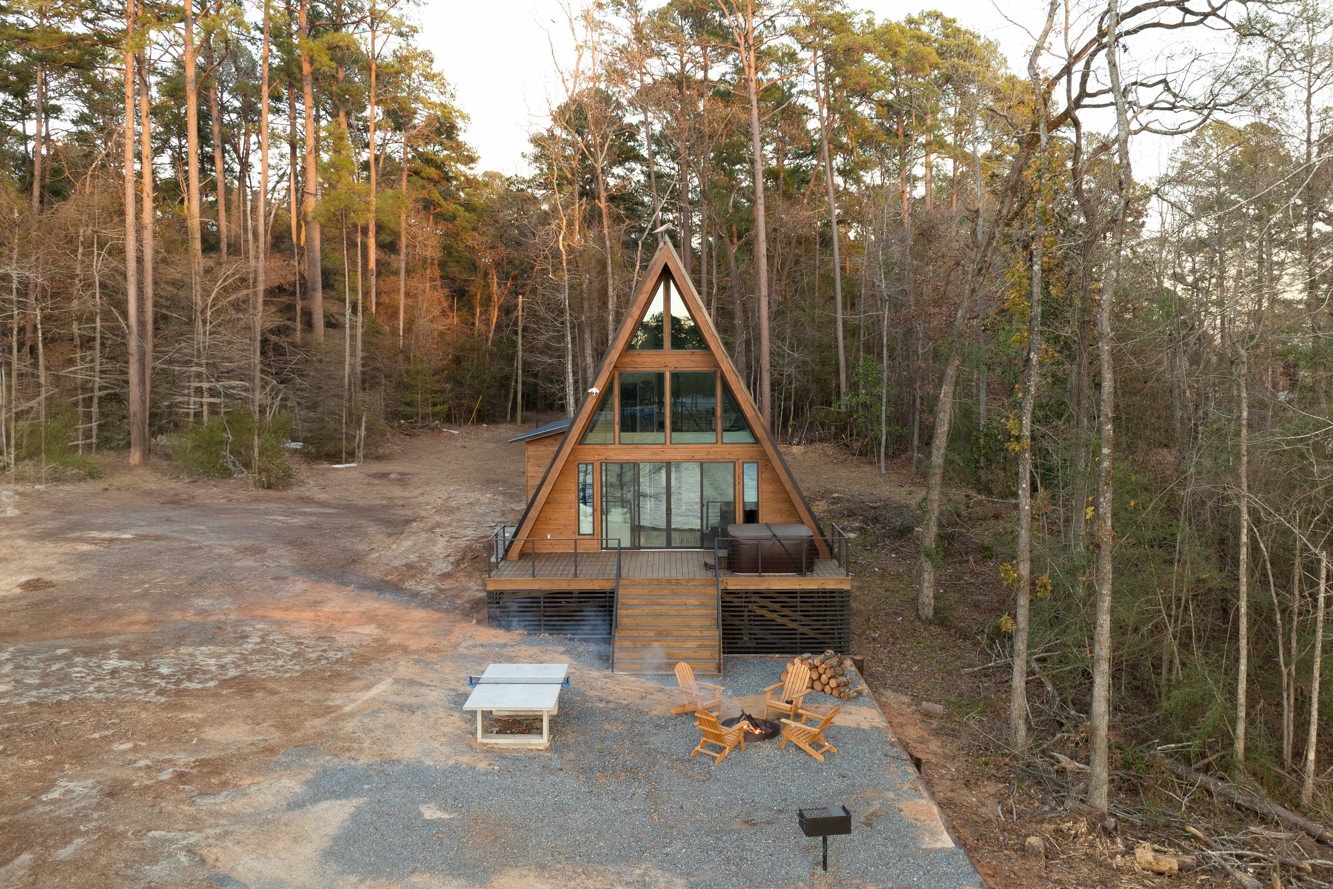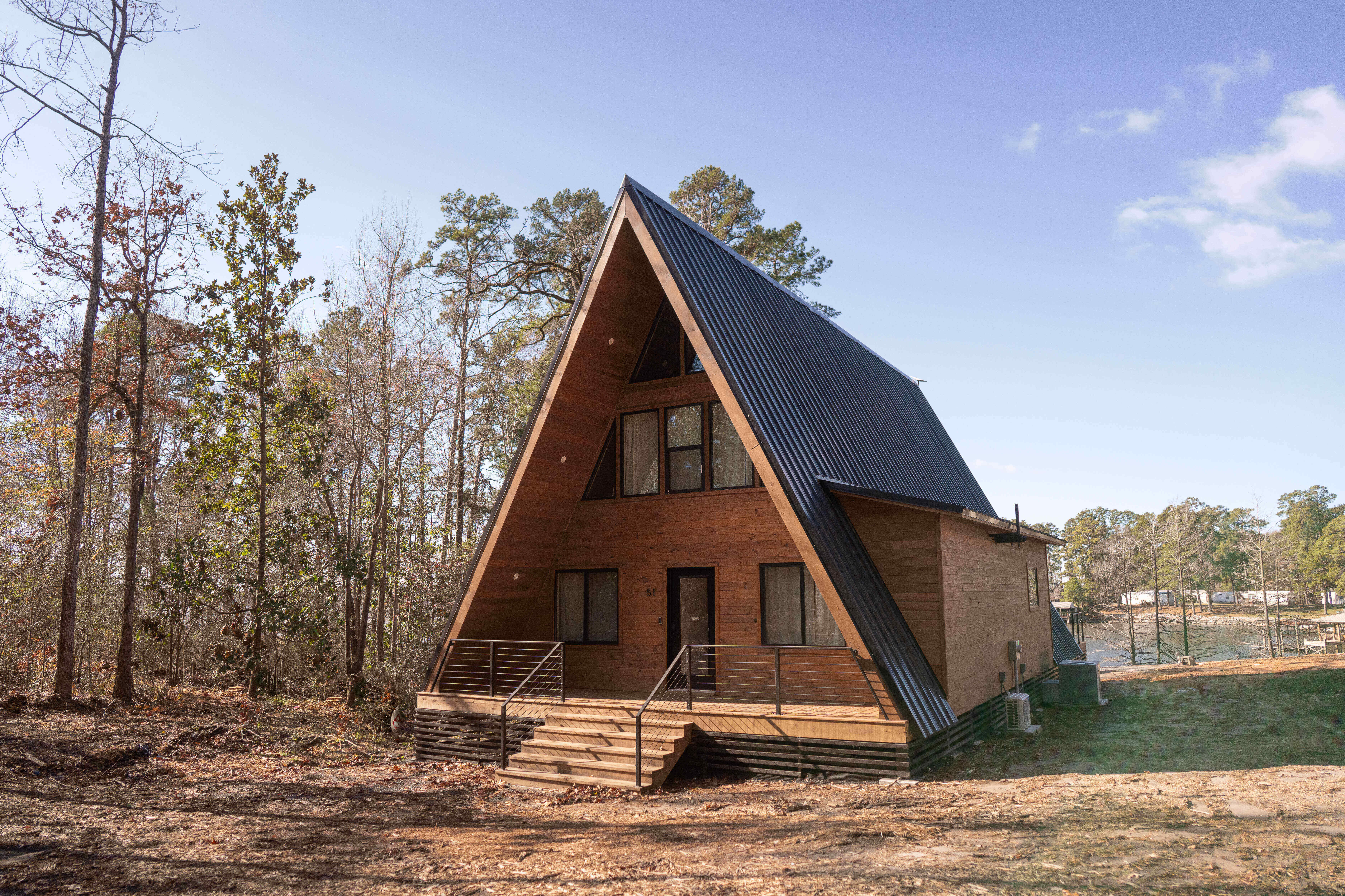 Although most of our residential work is done in Oklahoma, sometimes our customers will take our windows across state lines! This customer built an A-frame cabin in Louisiana and installed single hung, horizontal sliding and picture windows in addition to sliding glass doors, in our thermal barrier aluminum frame with stunning black finish.