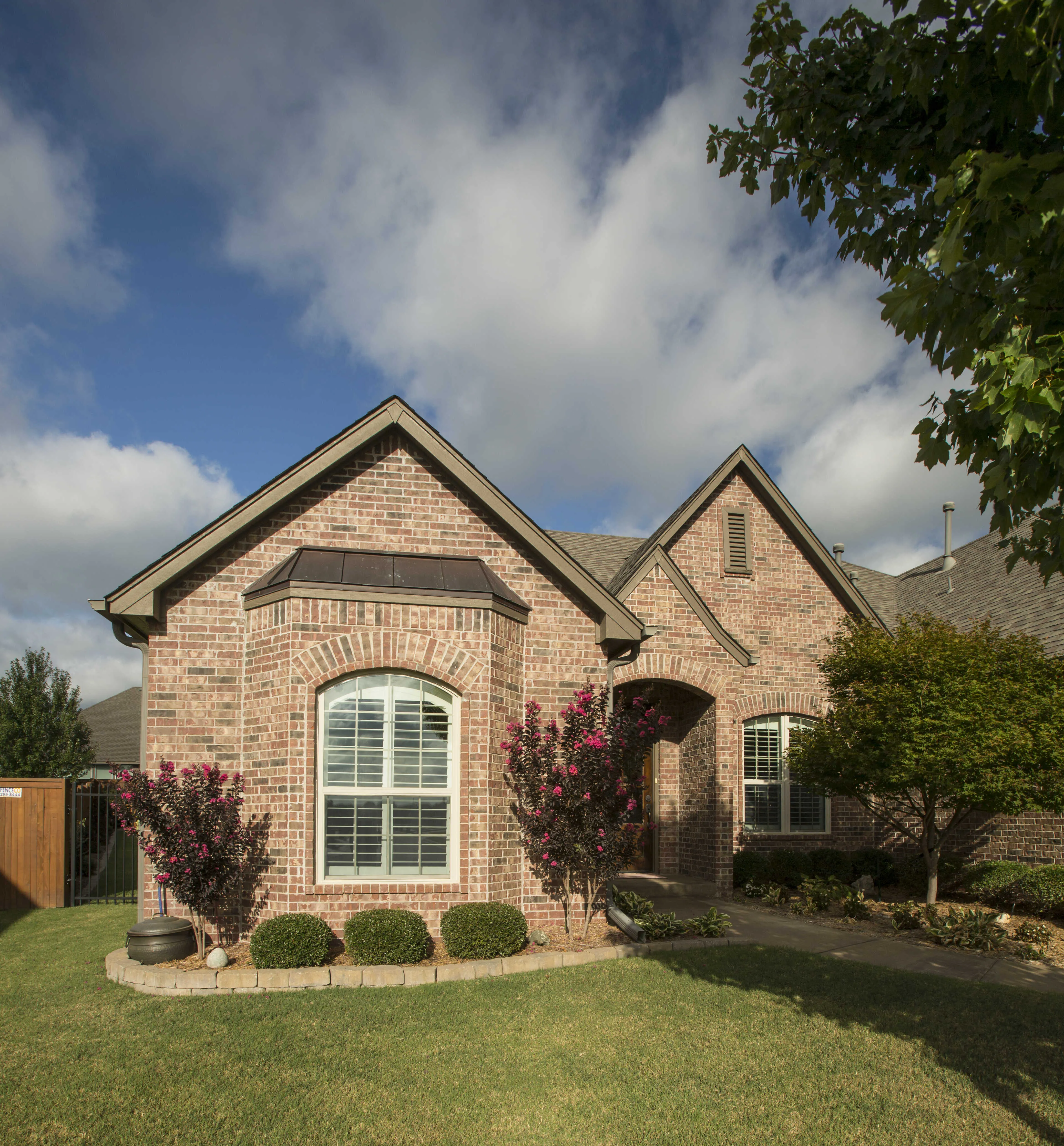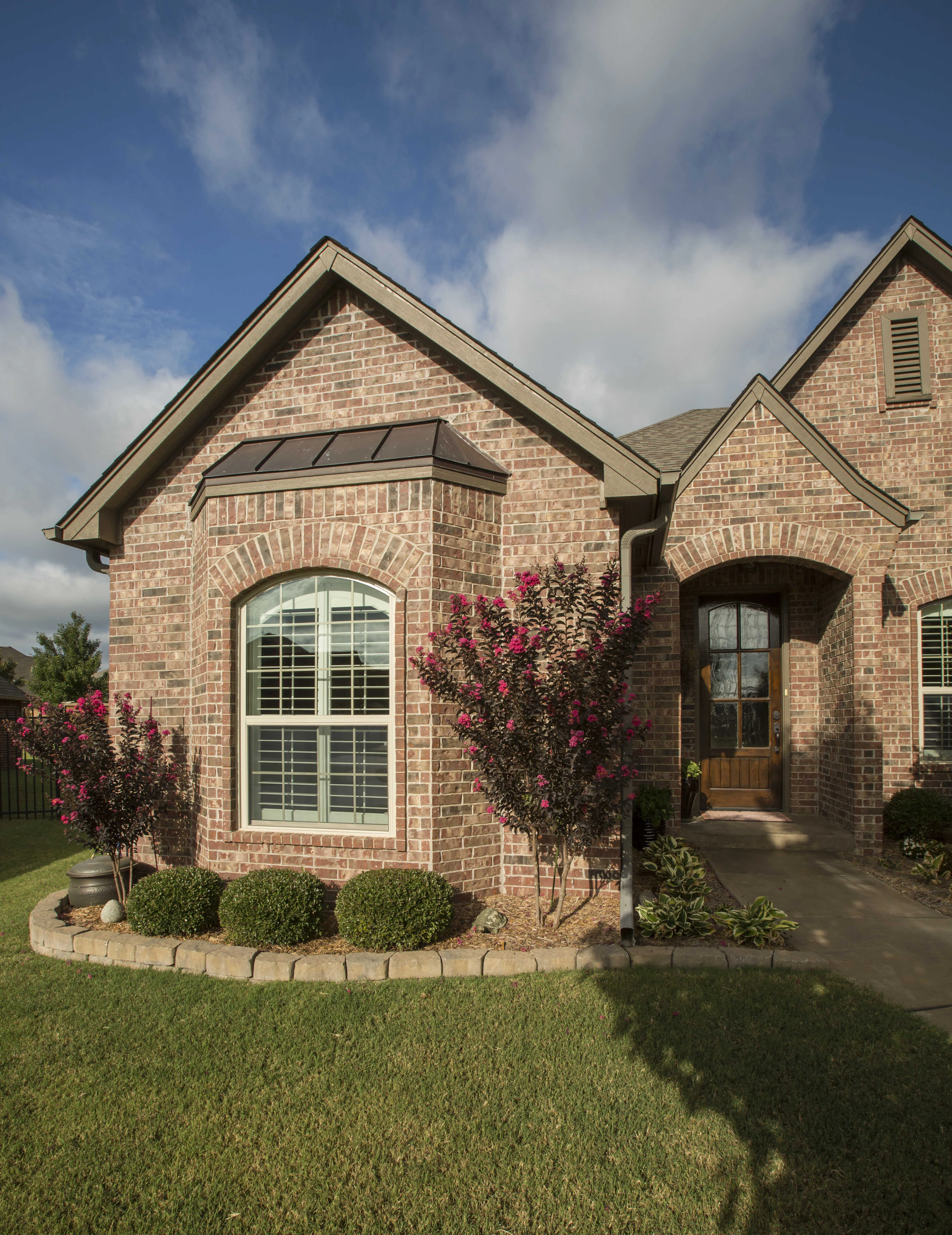This Jenks home features thermal barrier aluminum eyebrow single hung windows in almond finish.