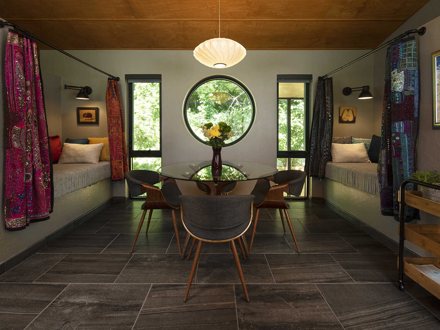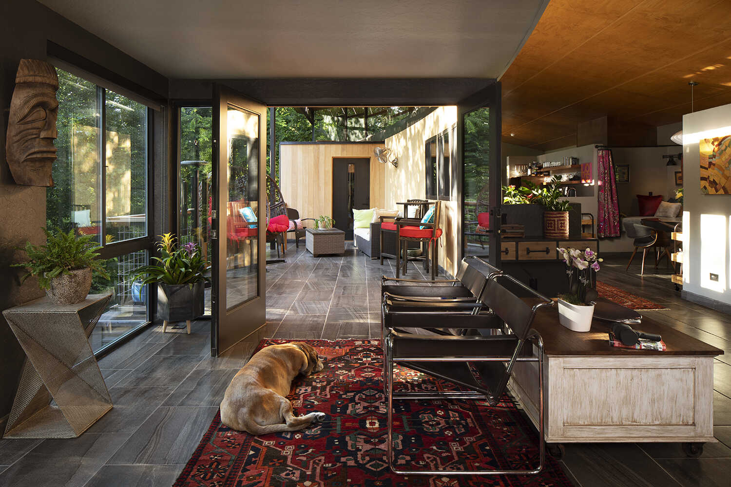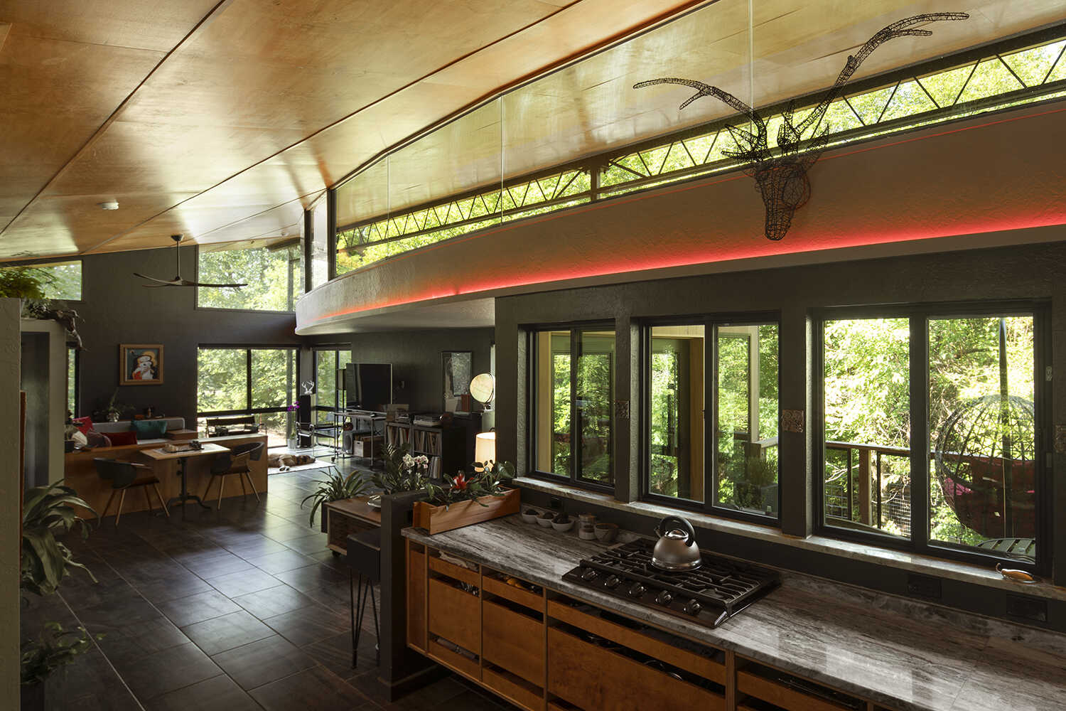 Architect and builder Alan Moring designed this modern home in Norman, utilizing several different types of thermal barrier aluminum products in black finish: picture, casement, horizontal sliding and double hung windows. Photography credit: Mel Willis