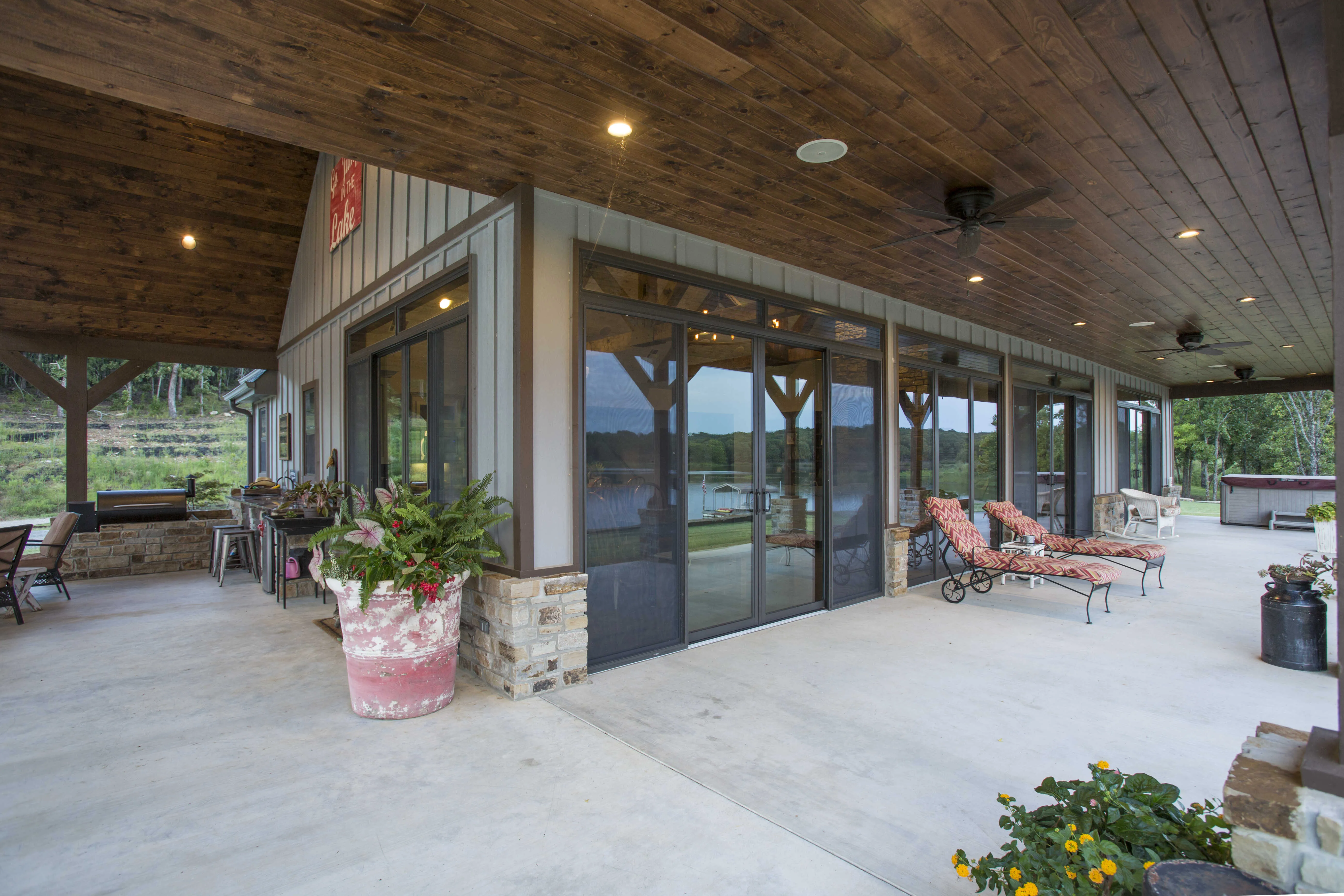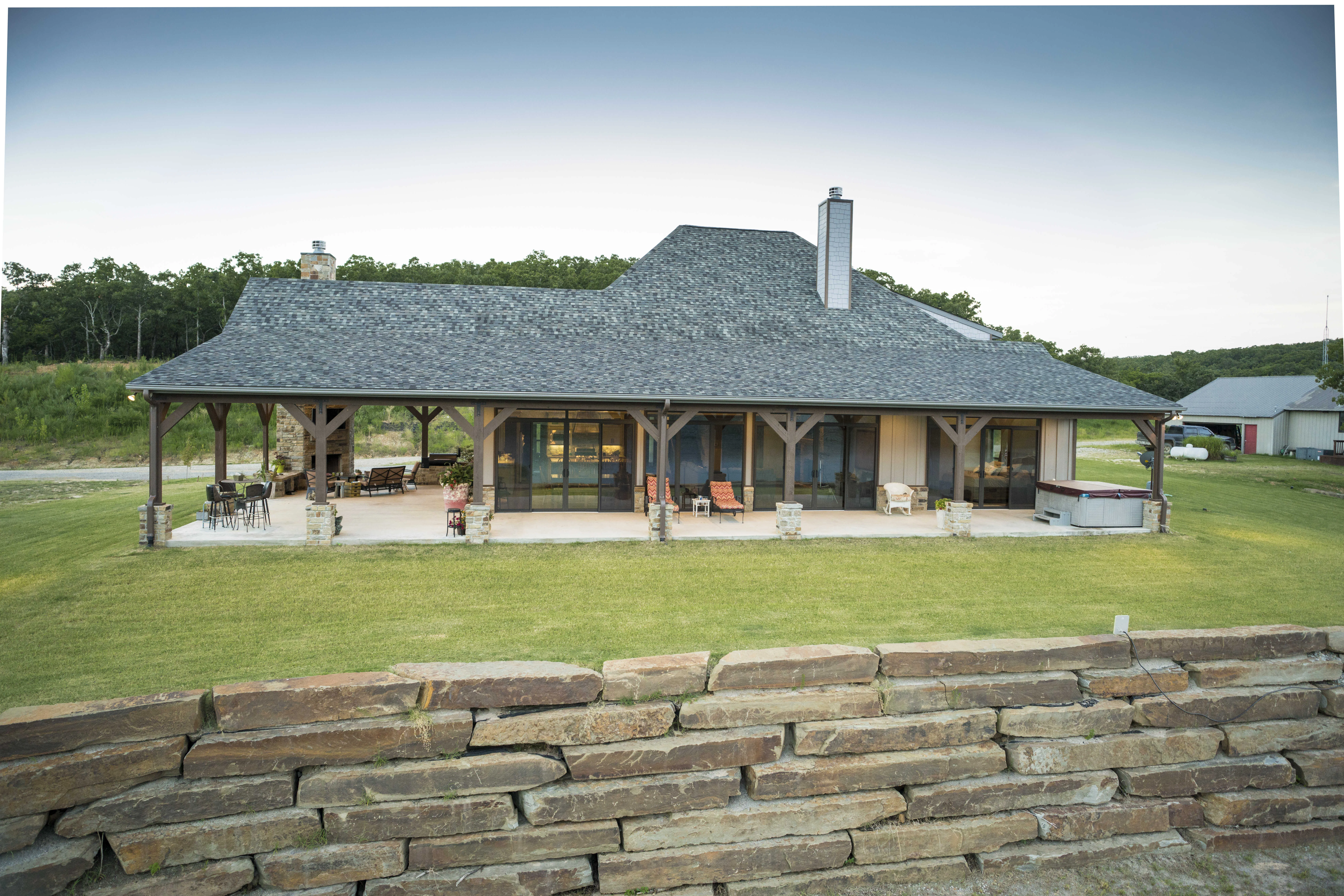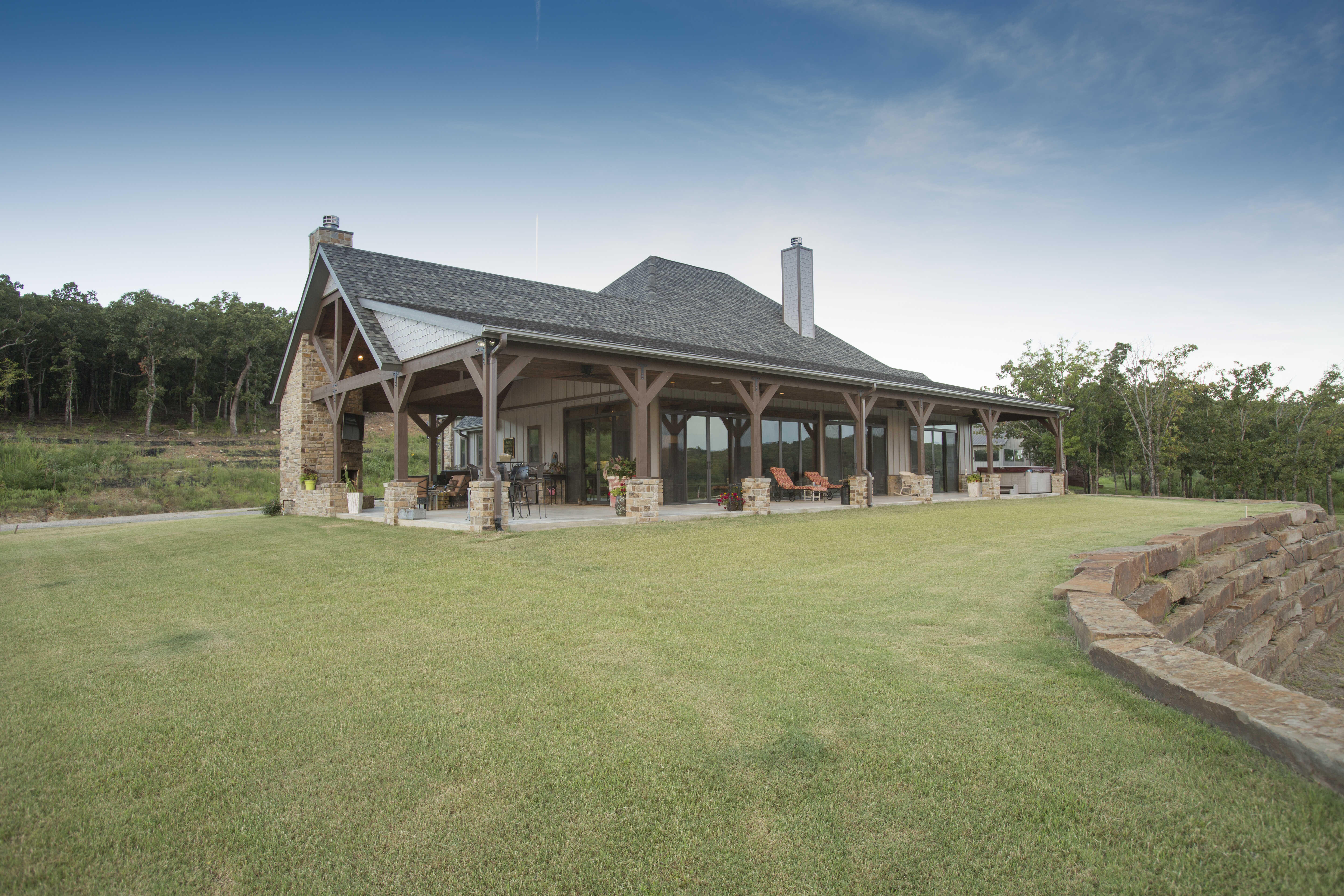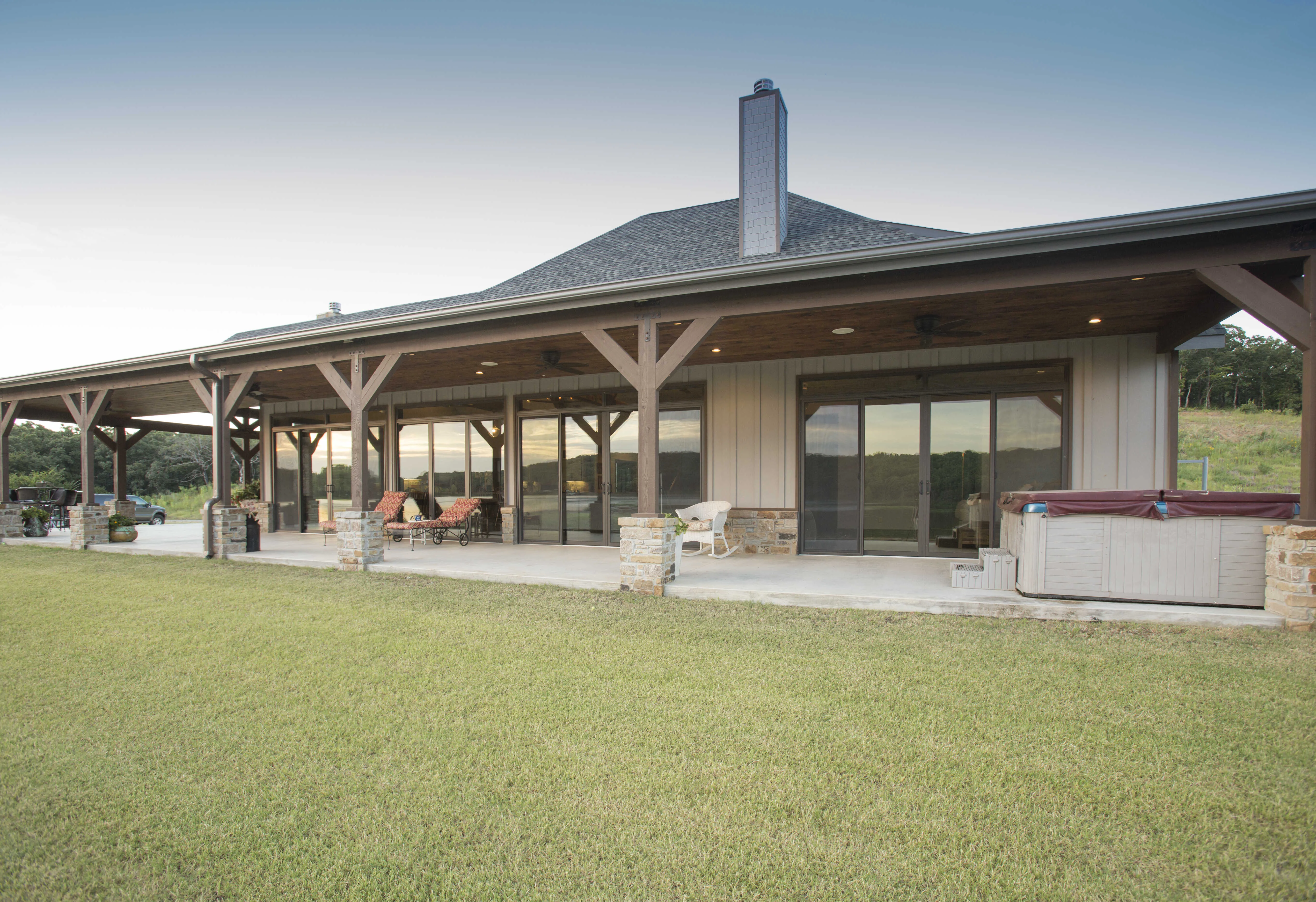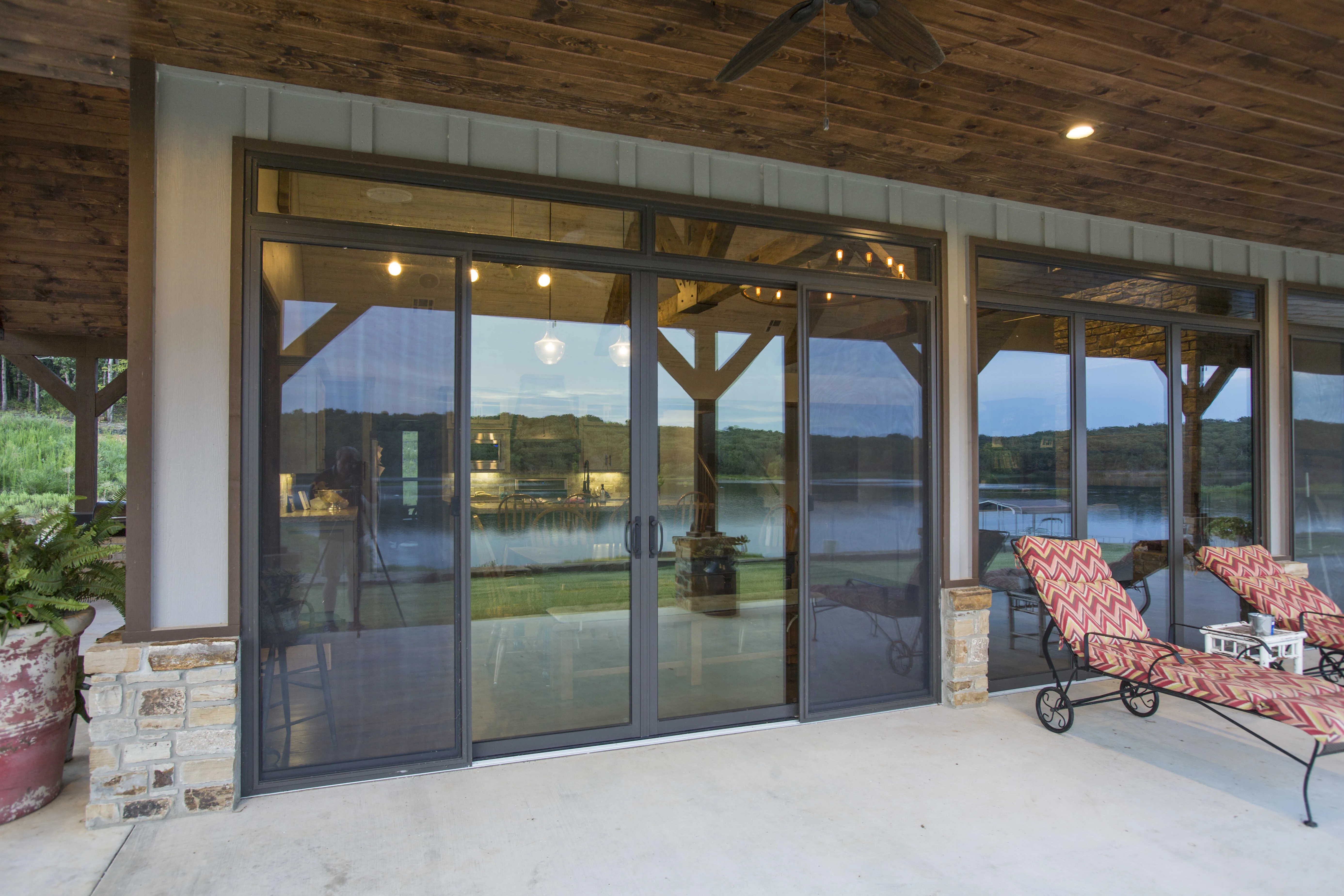 This Okemah residence prominently features sliding glass doors with transom, single hung and picture windows, in bronze finish and thermal barrier aluminum frame.