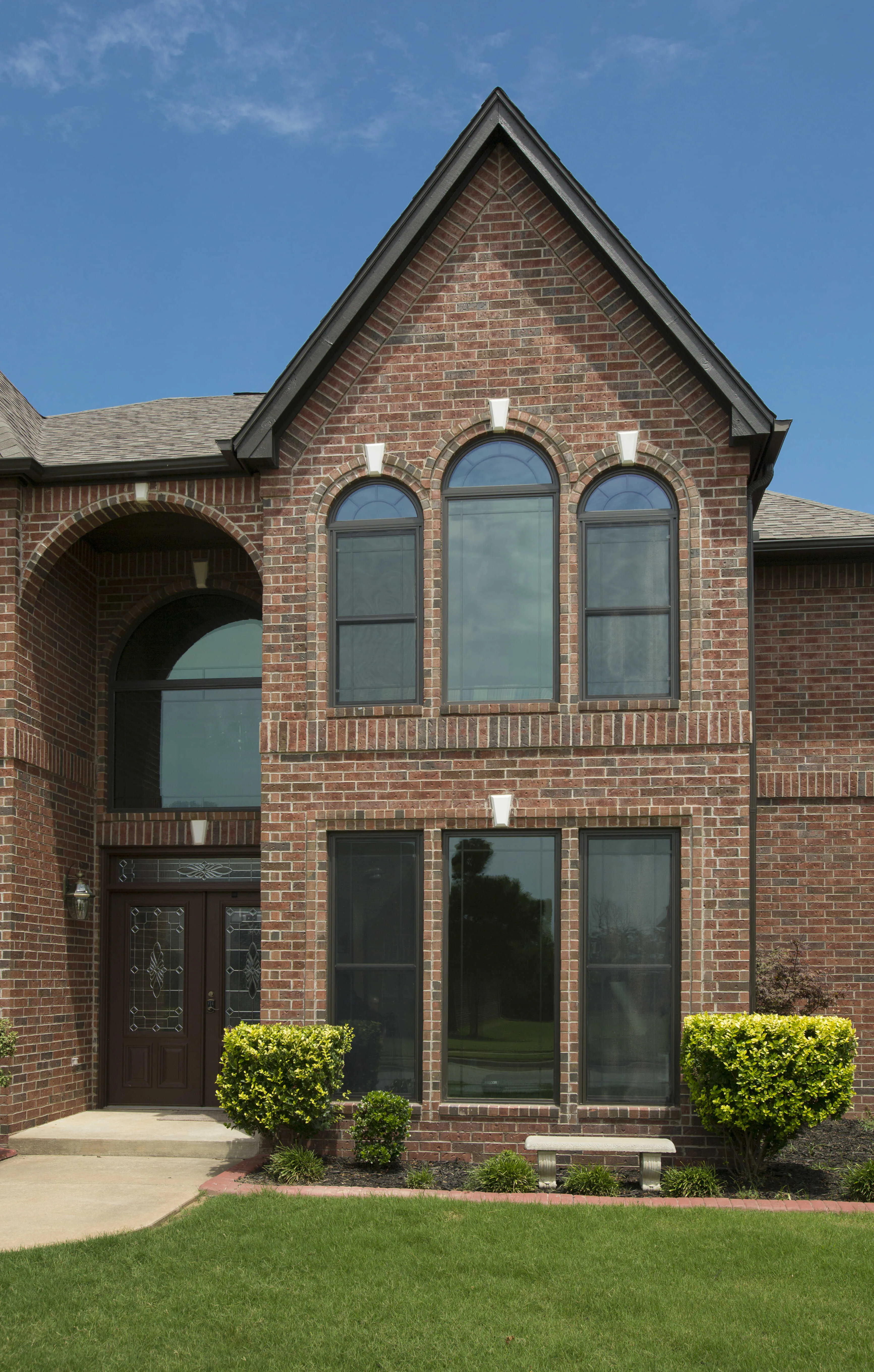This Sand Springs home features our thermal barrier aluminum windows in bronze finish with a prairie style grid pattern.